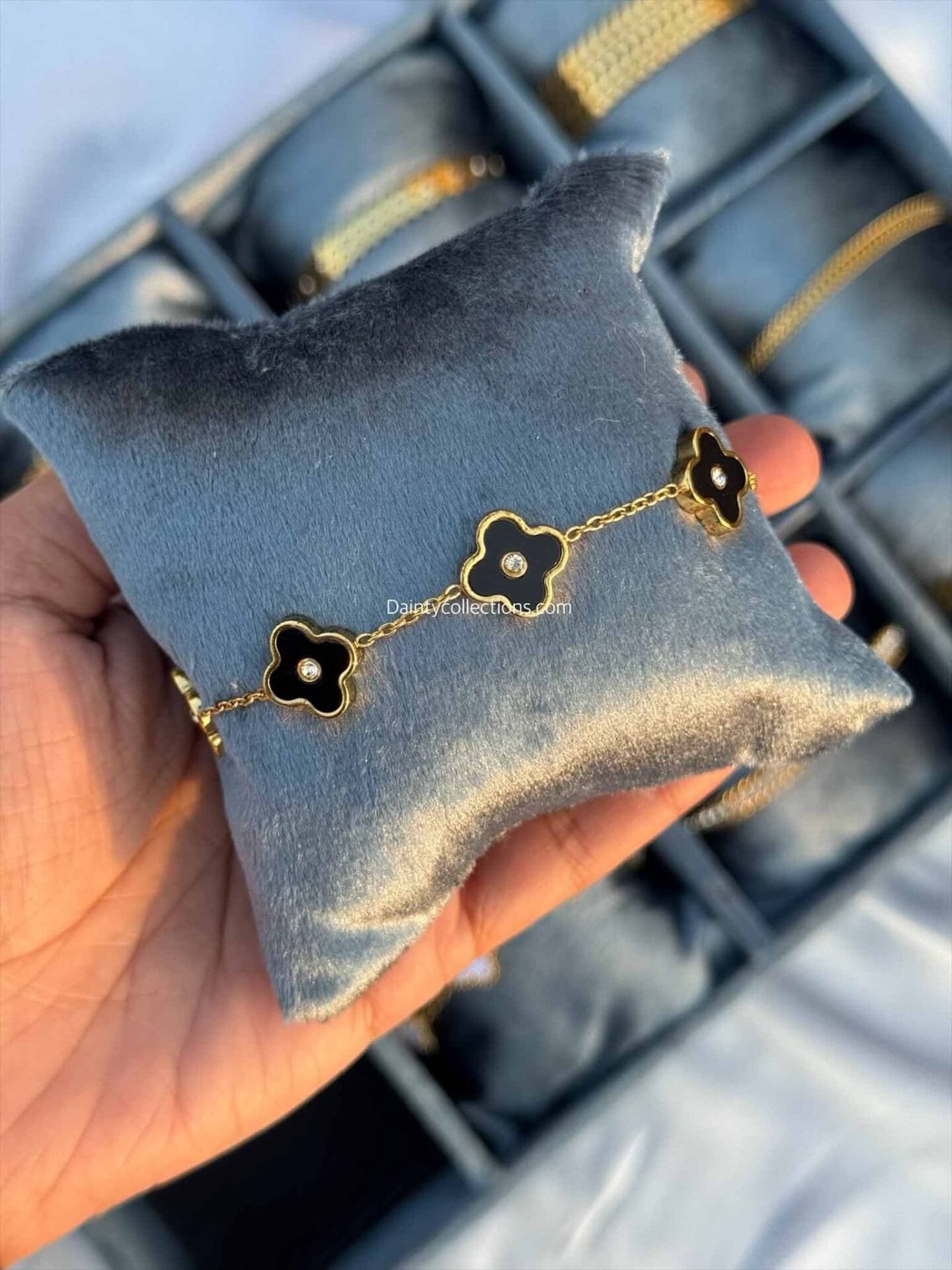 Clover stainless steel gold bracelet black