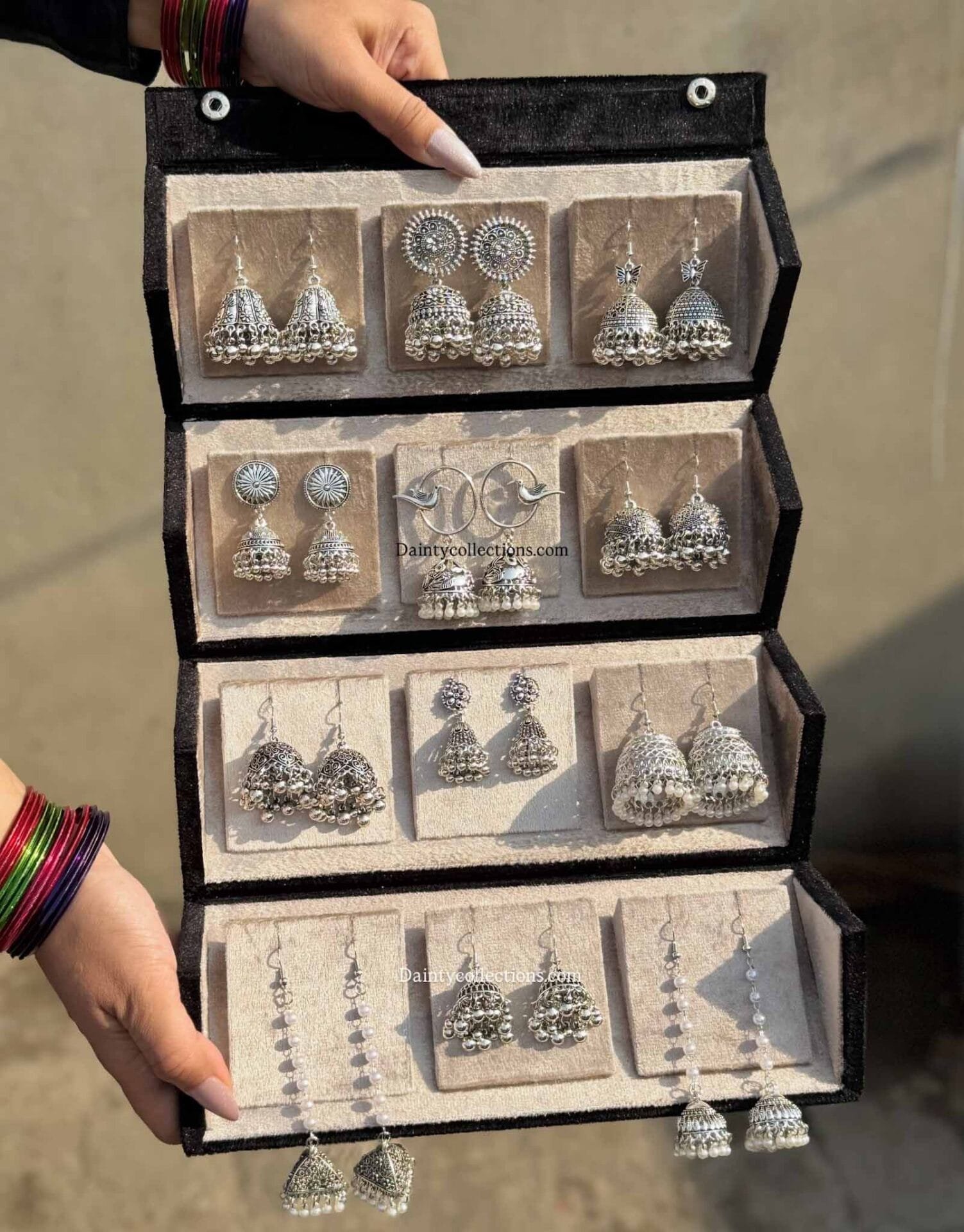 Jhumka gift box – 12 silver jhumkas