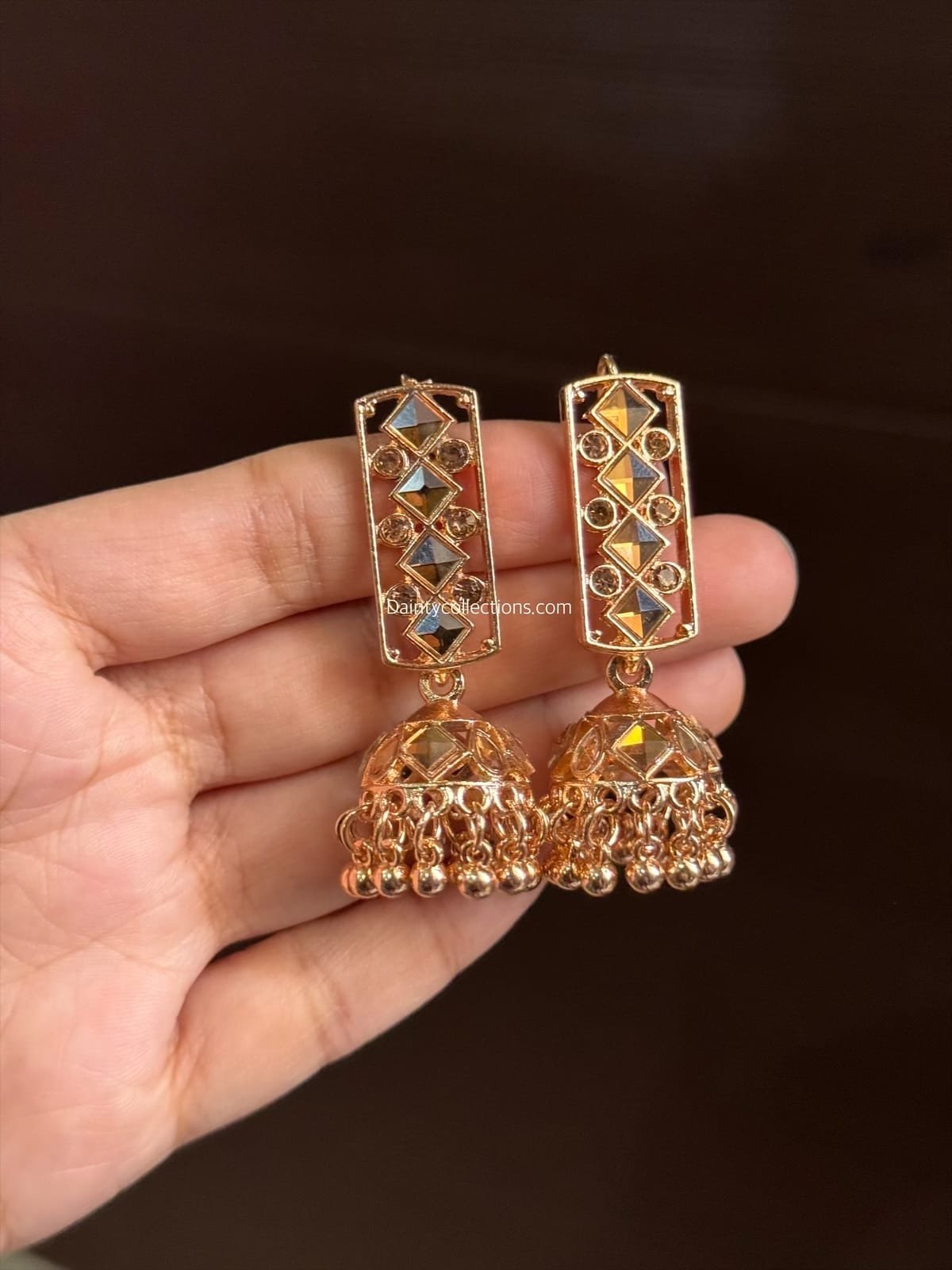 Kundan jhumki rose gold stone