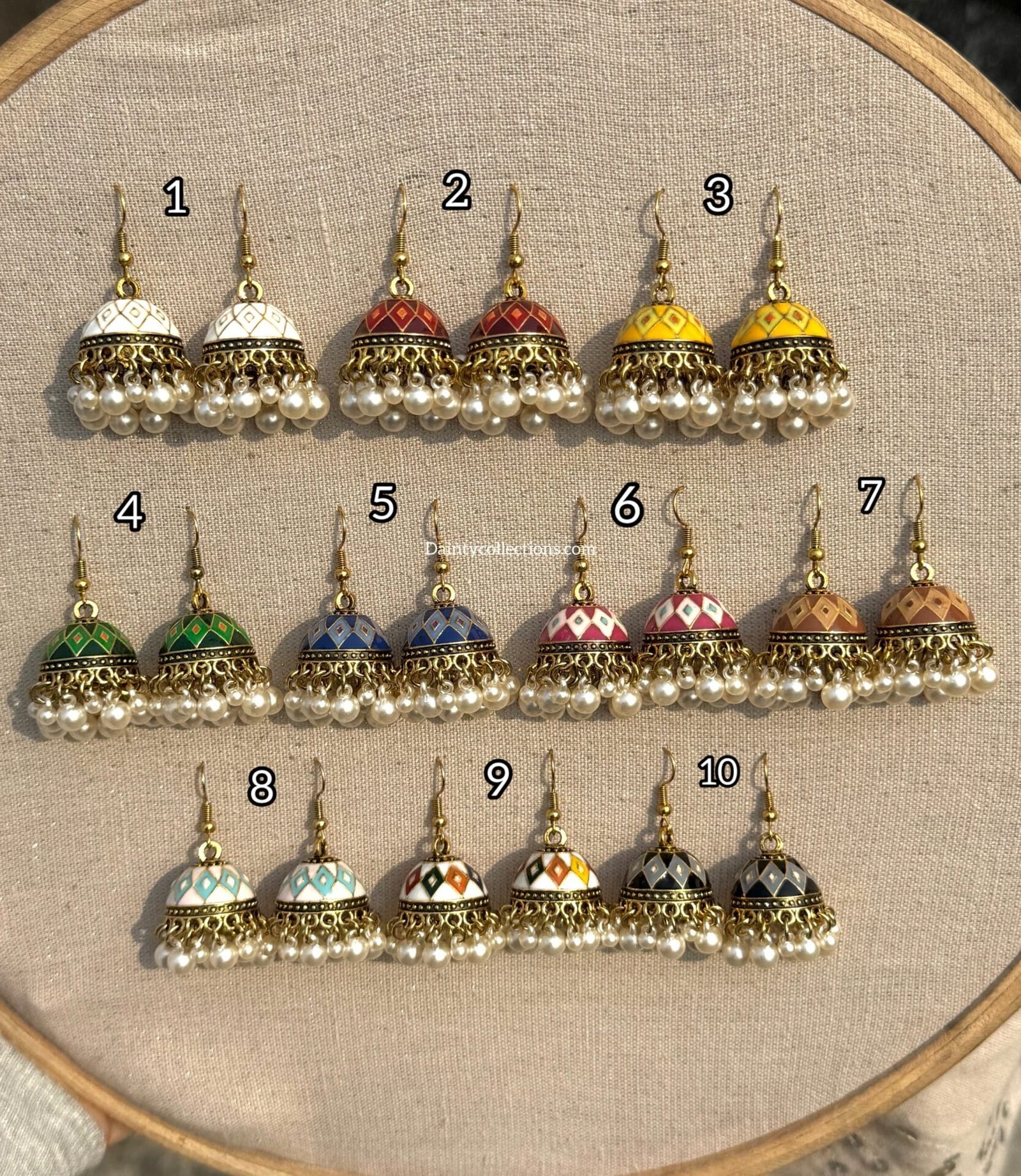 Mahe jhumki antique with hanging pearls (10 colors)