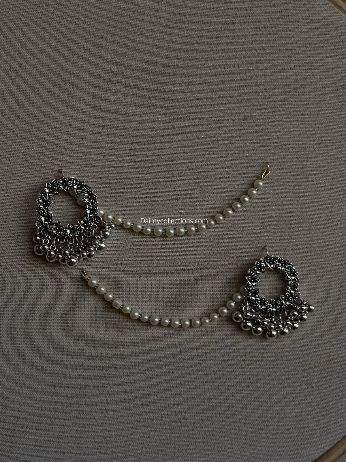 Gul e lala jhumki silver with pearl Sahara