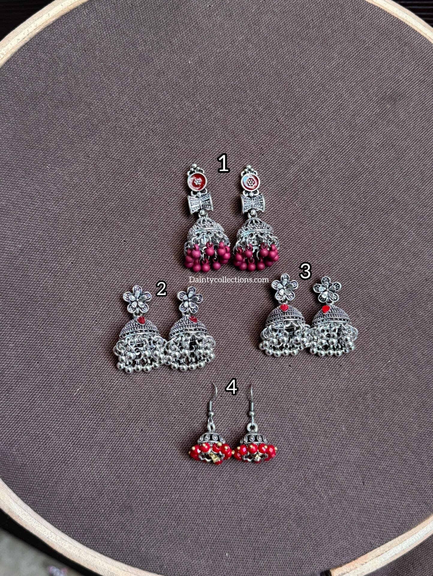 Rang barang – Red & maroon jhumki silver
