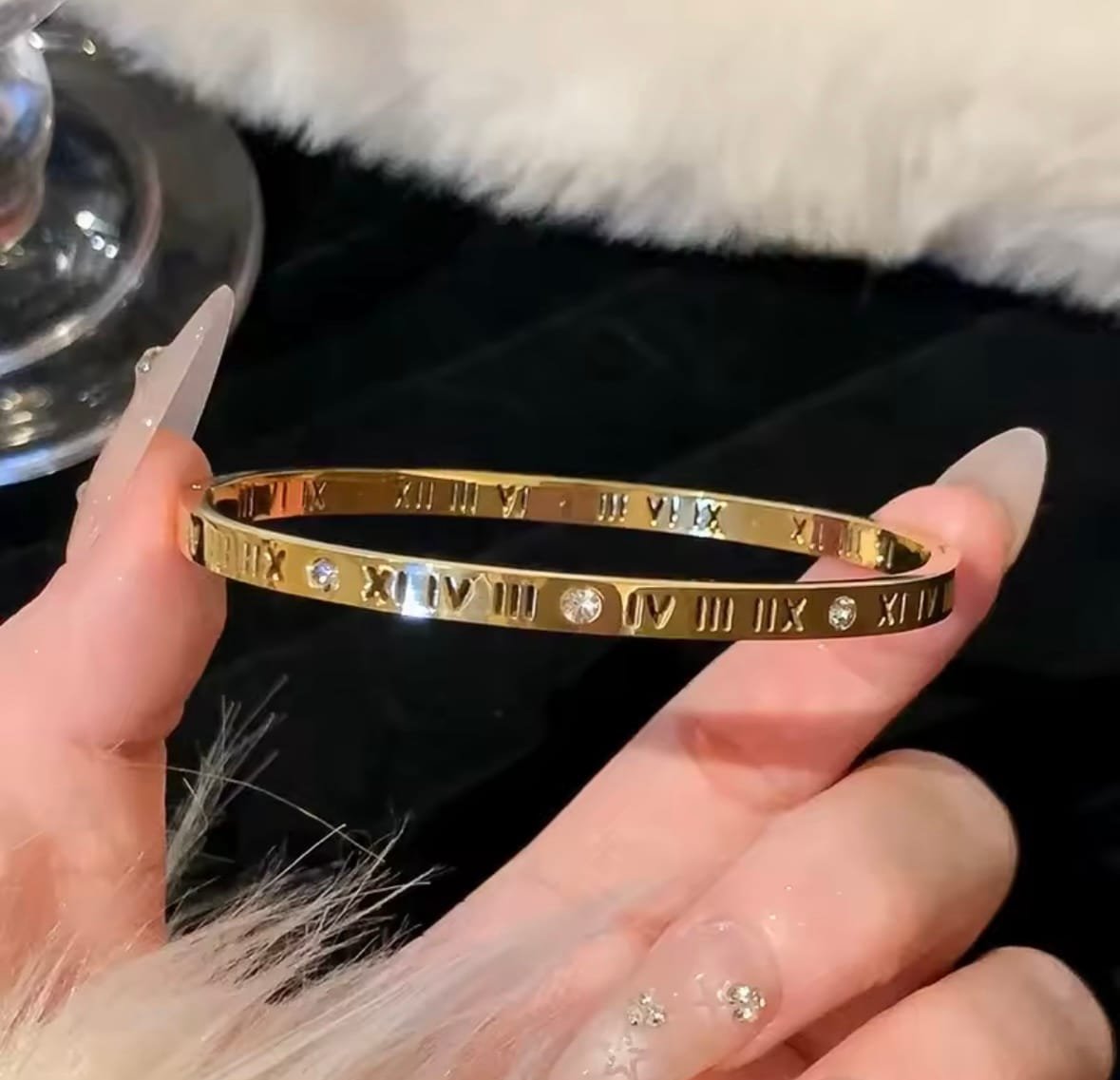 Roman numerals stainless steel gold bracelet