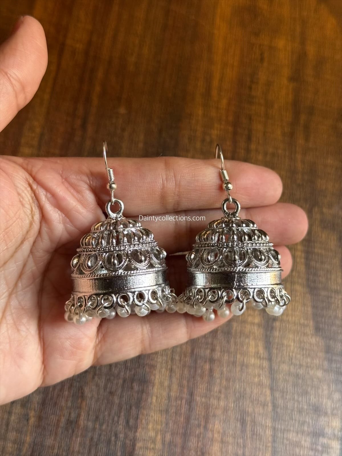 Sultana jhumka silver with white pearls